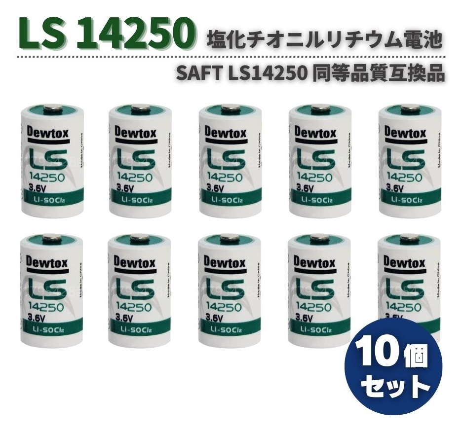 ■Deutox製 SAFT LS14250 同等品質 互換品 ■サイズ:1/2AA 24.5mm X 14.5mm ■ターミナルタイプ:スタンダード ■公称電圧:3.6V 1200m Ah ■IEC 60086-4安全基準に準拠 ■PLC CNC 工作機械 ガスメーター リアルタイムクロック用 ※仕入れ時期により若干本体ラベルのデザインが変更される場合がございますのでご了承ください。