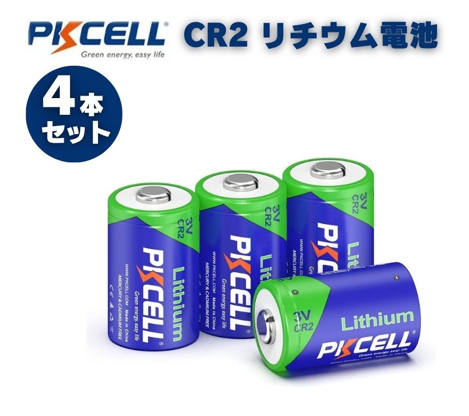 ■PKCELL CR2 1CR2 5046LC CR15H270 CR17355 DLCR2 EL1CR2 KCR2 RLCR2-2 3.0V 850mAh リチウム 電池 乾電池 非充電式電池 4本セット
