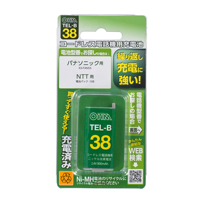 ■コードレス電話機用充電池 長持ちタイプ (品番)05-0038 TEL-B38 [電池:コードレス電話機用充電池 オーム電機]