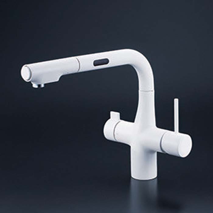 ■KVK KM6131DSCECM4 ビルトイン浄水器用シングルシャワー付混合栓(センサー) 電池 マットホワイト(代引不可)