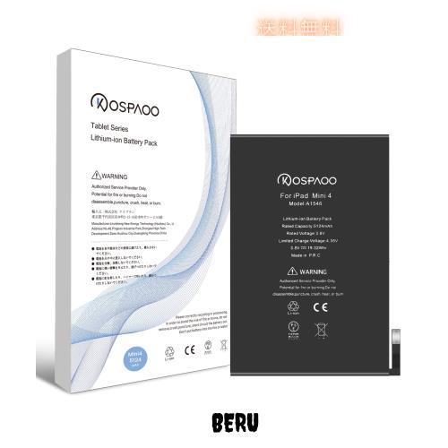 ◆商品名:KOSPAOO for i Pad mini4 バッテリー 第4世代 互換 A1546電池 容量5124m Ah 3.8V PSE認証 適用A1538/A1550機種 交換修理用 Lithium-ion Bat