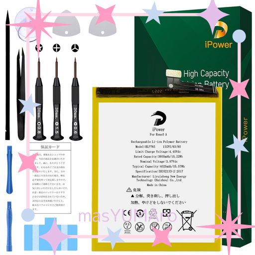 ■IPOWER FOR OPPO RENO3 A バッテリー交換 元の容量3935MAH 3.87V BLP765電池 PSE認証 対応OPPO A91/CPH2013/A002OP機種 RECHARGEABLE LI-