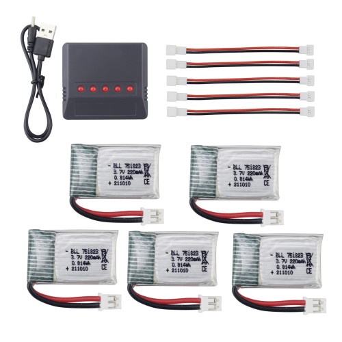 ■5PCS 3.7V 220mAh 電池 + 5 充電器用のE010 E010C E011 E011C E013 GoolRC T36 NINHUI NH010 F36 H36 HS210 SANROCK GD65A ATOYX AT-66 4