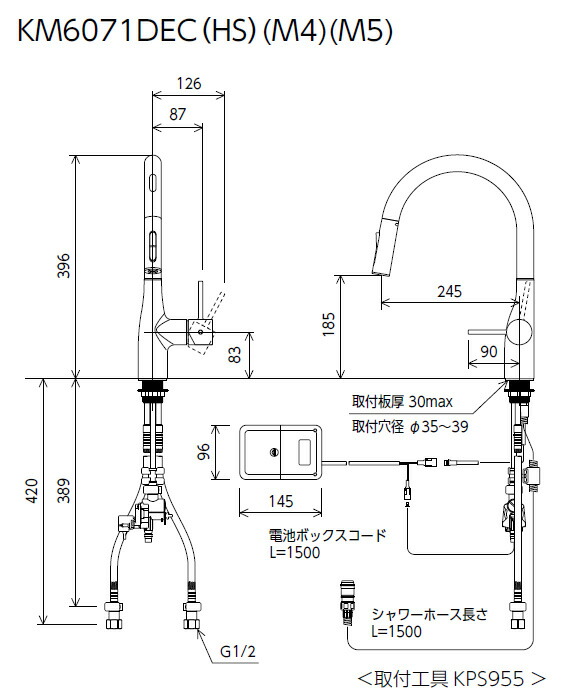 ■KVK シングルシャワー付混合栓(センサー付) 電池(寒冷地用) 【品番:KM6071ZDEC】