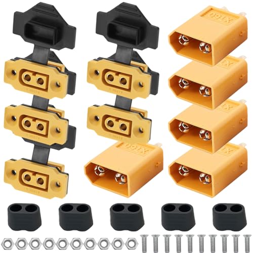 XT60E-F プラグ キット RC FPV ドローン Lipo 電池 Quadcopter (10 パック)のための防水カバーが付いている XT60E-F のメス プラグ パネルの台紙 XT60h XT60 のオスの弾丸のコネクター商品の性質上、取り付け方法や使用環境、相性に関するサポートは行っておりません。また、商品の使用により生じた如何なる損害・被害も、弊社では一切の責任を負いかねますので予めご了承ください。仕様: 商品名:XT60E-F プラグキット カラー:イエロー プラスチック材質:PA 定格電圧:DC500V 定格電流:30A 瞬間電流:60A 接触抵抗:0.80mohm ケーブル仕様:12AWG 推奨用途: コントローラー 特徴: 1. 新品、高品質、耐久性があります。2. インストールと使用が簡単。パッケージ内容: 5 x XT60E メスプラグ 5 x XT60H オスプラグ 5×ダストキャップ+ネジ