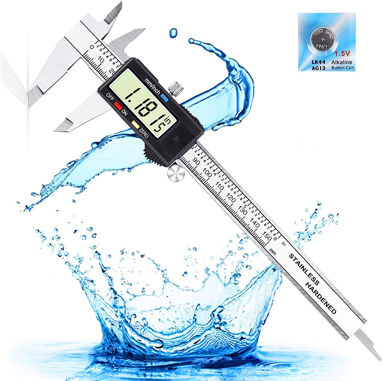 ■デジタル ノギス 150mmステンレス鋼製高精度ノギス LCDディスプレー 外径 内径 深さ 段差測定 ホールド機能 ゼロリセット 防水防塵 電池