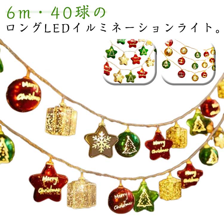 ■LEDイルミネーション 装飾 クリスマスライト スター USB ボール 【6m/40球】 ガーランドライト 【6m/40球】 ツリー メッキ加工 電飾 電池