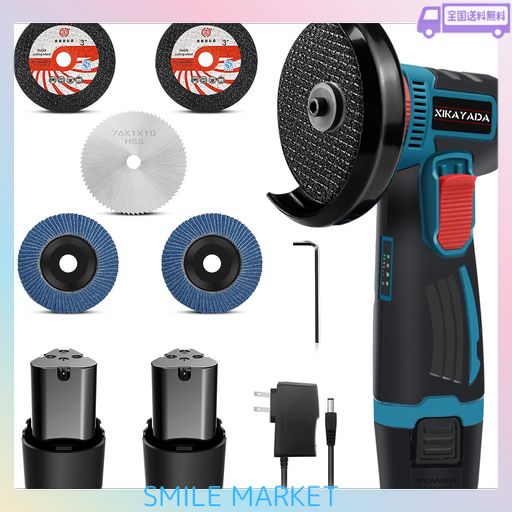 ■【改良型】ディスクグラインダー 充電式 12.6V/76MM ミニグラインダー 電池/モーター増強 19500RPM高速 2バッテリー 砥石5枚付き コード
