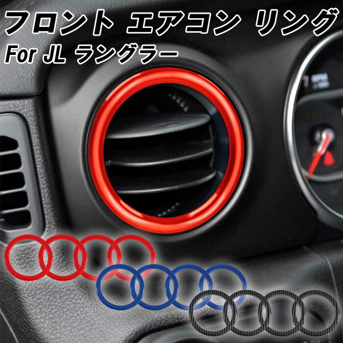 ■Jeep ラングラー JL フロント エアコン リング 4点セット レッド ブルー カーボン調 外装 内装 社外 アクセサリー カスタム パーツ カス