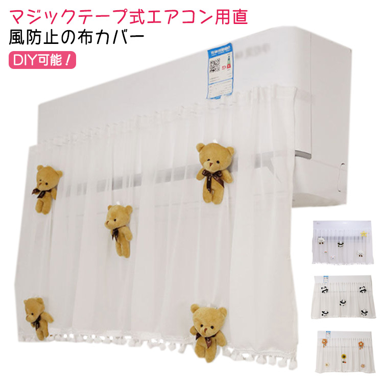 ■エアコン 風よけ 布 かわいい 冷房 暖房 ぬいぐるみ飾り エアコン用 マジックテープ付 レースのカーテン エアコン風よけ 直撃風防止 空気