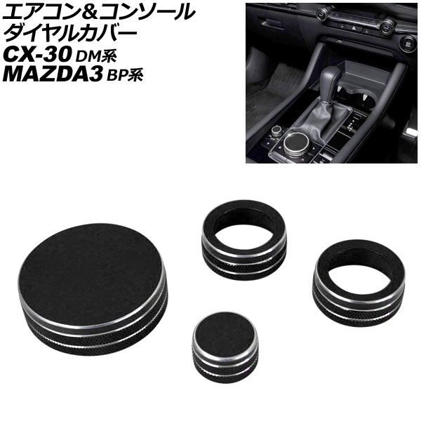 ■エアコン&コンソールダイヤルカバー マツダ CX-30 DM系 2019年10月〜 ブラック アルミ合金 入数:1セット(4個) AP-IT4549-BK