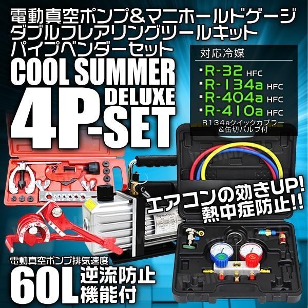 ■エアコン修理セット ガスチャージ 真空ポンプ パイプベンダー フレアリングツール R134a R32 R410a R404a 対応 冷媒 缶切付 エアコン ガ