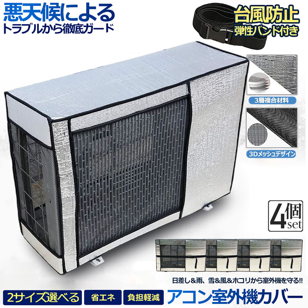 ■エアコン 室外機 カバー 室外機保護カバー 4個セット アルミ箔素材 日 雨 雪 風 ホコリよけ 室外 機を守る 遮熱保護 劣化防止 省エネ 防