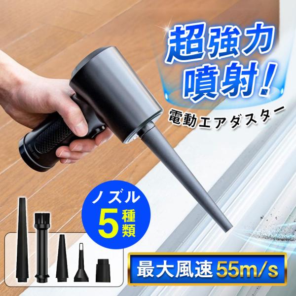 ■電動エアダスター 強力 3段階 風速調整 ノズル付 6000mAh大容量 LEDライト搭載 コードレス 充電式 PC掃除/キーボード/エアコン/洗車用