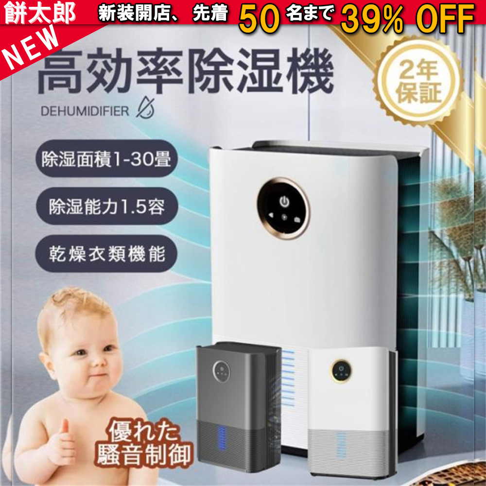 ★商品詳細★ ●製品名:除湿 干衣 空気清浄機 ●サイズ(約):210x150x360mm ●重量(約):3KG ●定格消費電力:40w ●空焚き防止、満水提示 ●適用面積:10−30畳 ●推奨使用環境:温度15〜40℃、湿度45〜90% ●タンク容量:約2.8L ●除湿量:600ml/日 ●動作音:43d B以下 保証期間:1年間保証