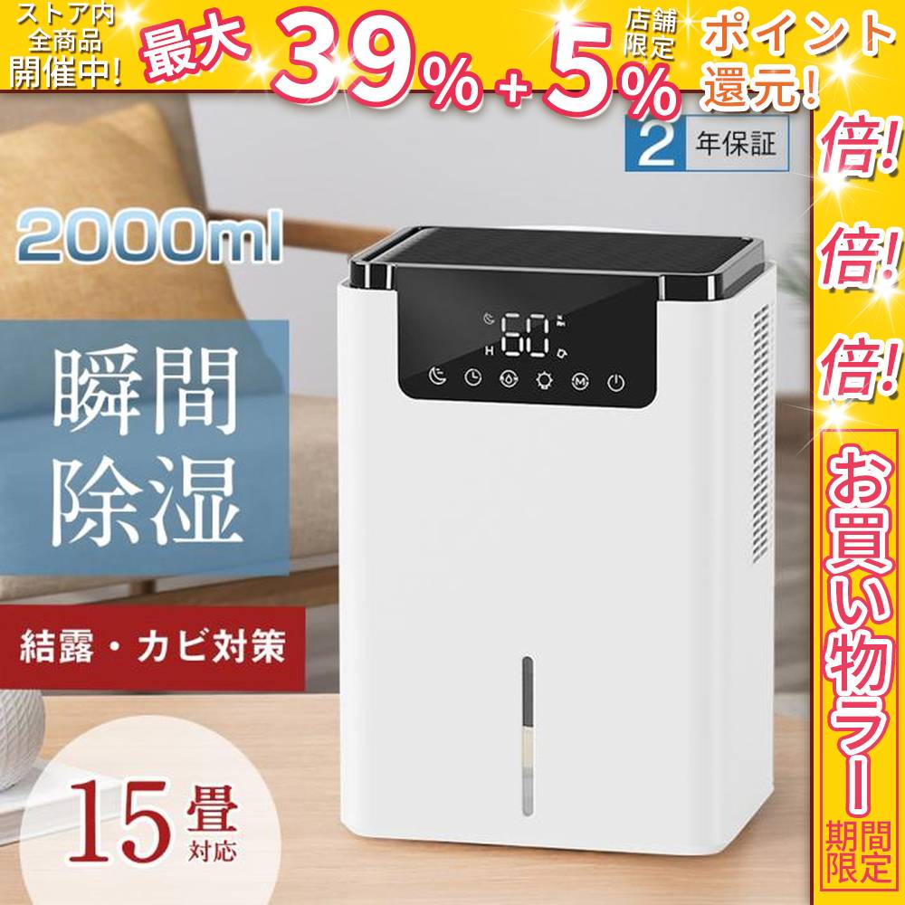 ■クーポン対象 年末セール 除湿機 小型 衣類乾燥 除湿器 2000ML 強力 静音 コンパクト 満水自動停止 タイマー付き 空気清浄 7色ライト 省