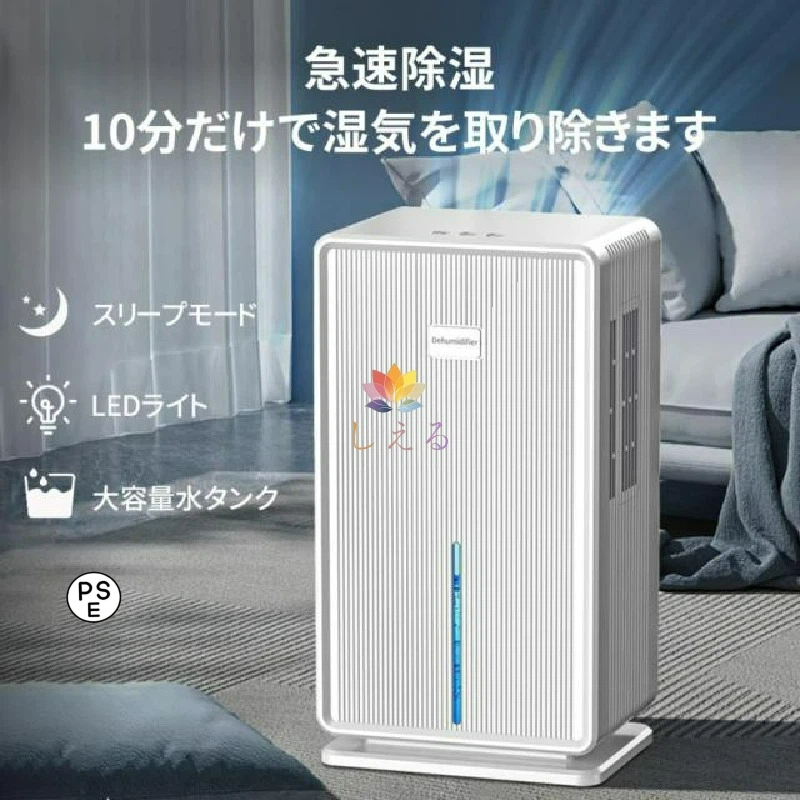 仕様 サイズ:幅15.5×奥行13×高さ22cm 重量:950g 材質:ABS樹脂 タンク容量:500ml 除湿能力:室温30度?湿度80%で250cc/日 セット内容:本体、ACアダプター 無光触媒フィルター(光触媒と違って、光のエネルギーを必要とせず、 暗所においても優れた消臭?抗菌効果を発揮! 暗室のホルムアルデヒドや硫化水素(生ゴミ臭など)、 アセトアルデヒド(タバコ臭など)、アンモニア(ペット臭)をすばやく分解?消臭)を使用。 除湿だけでなく、消臭?抗菌機能も! ●ご注意:※室温15℃以下、湿度20%以下では本来の除湿能力が発揮できないことがあります。また、氷点下になる場合には除湿水が凍るため運転できません。 ※電源アダプタは周囲温度によって、触れると熱く感じる温度(約50?60℃)になることがありますが、日本の安全基準に適合しております。 ※熱に弱い素材の場所に置かないようお願いします。 コスト & amp;amp;amp;amp;amp;amp;省エネルギー 除湿機は省エネルギーです。省電力と環境保護に役立ちます生活を快適にすることはもちろん