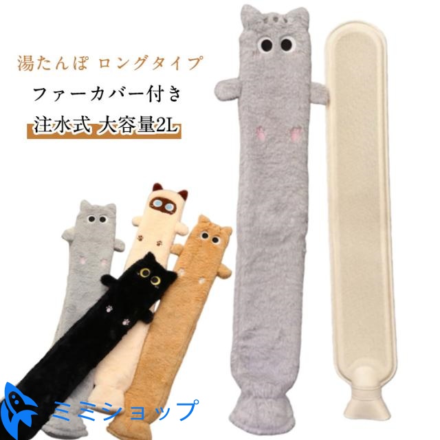 ■湯たんぽ ロング ふわふわ ファー カバー付 可愛い 大容量 ゆたんぽ ロングタイプ 注水式 布団用 カバー付き お湯入れ エコ湯タンポ 細長