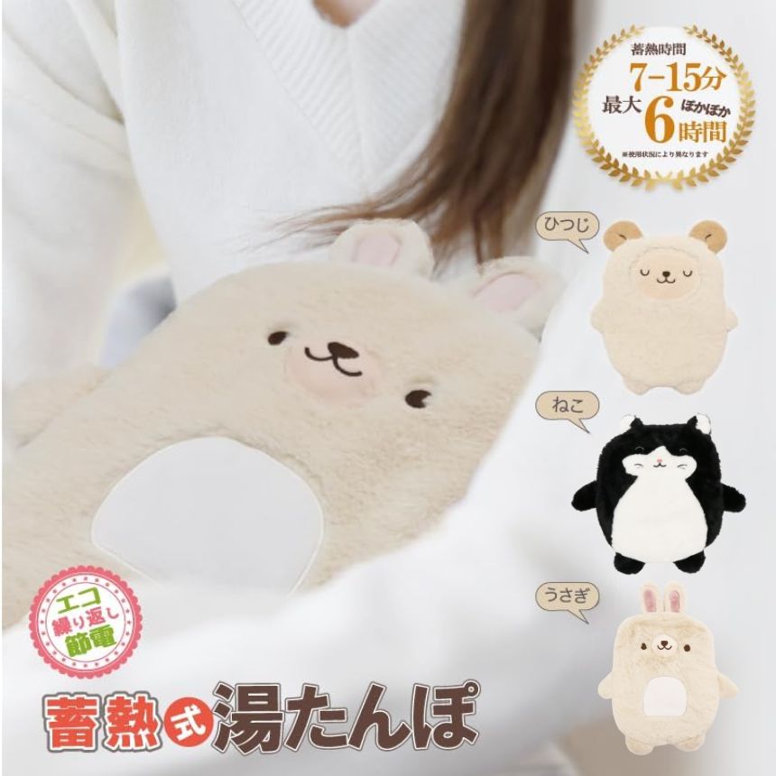 ■湯たんぽ 充電式 湯たんぽカバー 電気湯たんぽ お湯 不要 蓄熱式 可愛い ぬいぐるみ かわいい アニマル カバー ひつじ ねこ うさぎ 就寝