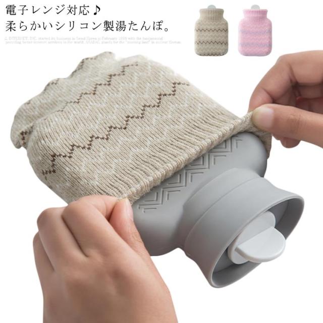 湯たんぽ レンジ対応 シリコン 注水式 ニットカバー付き コンパクト テレワーク 子供 寒さ対策 冷え性対策 安眠 夏 冬 両用 冷蔵庫 電子レンジ対応