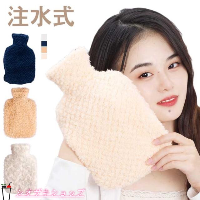 湯たんぽ お湯入れ 注水式 もこもこカバー付き 手を入られるポケット付き ハンドウォーマー 防寒 暖かい 抱き枕 手足あったか 柔らかい ギフト アームウォーマー