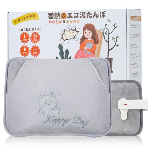 【蓄熱式湯たんぽ】 くり返し使える蓄熱式の湯たんぽ 電源を繋いで蓄熱することであたたかさが持続してくれるので、 面倒なお湯の入れ替えは一切不要なエコ仕様です。 もこもこの凹凸が特徴的な生地を使用し、触り心地にもこだわりました。 ●最短約7分の充電だけでいつでもすぐポカポカ どこにでも持ち運べて、繰り返し使える蓄熱式エコ湯たんぽ。 面倒なお湯の入れ替えは不要で、好きなときに好きな場所でお使いいただけます。 ●約7〜15分の充電で、あたたかさ長持ち 最長約15分の短い充電時間で、長時間の使用が可能です。 手軽にサッと充電してすぐに身体をポカポカ温めてくれます。 就寝前や入浴時などちょっとした隙間時間で充電ができるのも嬉しいポイントです♪ ■ブランド名 Room Essence / ルームエッセンス ■品番 GLK-208BE/GLK-208GY/GLK-208WH ■サイズ 約W36×D26cm ■重量 約1.4kg ■素材 湯たんぽ本体:PVC ポリエステル、ポリカーボネート、ポリプロピレン、エポキシ樹脂、銅、304ステンレス、ABS、水 カバー:ポリエステル