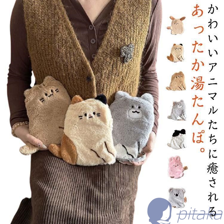 ■送料無料 湯たんぽ 注水式 動物柄 お湯入れ 冷え対策 秋冬物 防寒対策 カバー付き 大容量 保温グッズ 節電 省エネ 可愛い プレゼント