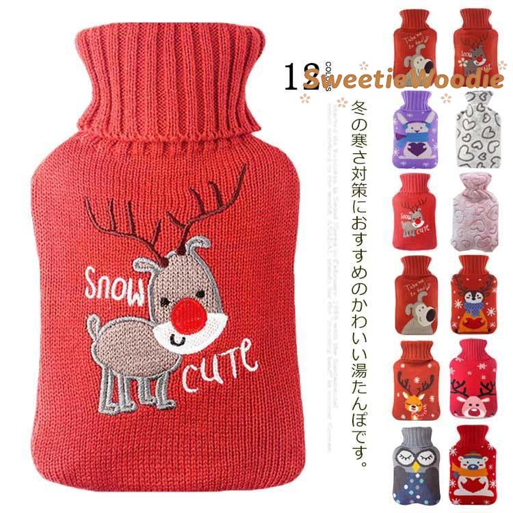 ■湯たんぽ 注水式 動物柄 サンタクロース お湯入れ 冷え対策 防寒対策 カバー付き 大容量 保温グッズ 節電 省エネ 可愛い プレゼント 500m