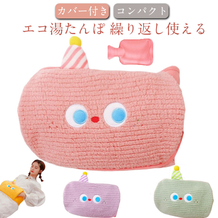 ■湯たんぽ ゆたんぽ エコ湯タンポ 3個セット 容量1000ml 3カラー選べる お湯入れ 注水式 カバー付き シリコン 可愛い 柔らか もふもふ 保