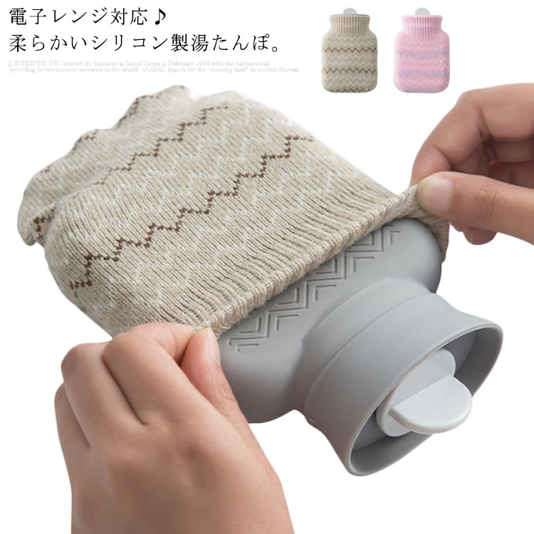 ■湯たんぽ レンジ対応 シリコン 注水式 ニットカバー付き コンパクト テレワーク 子供 寒さ対策 対策 安眠 夏 冬 両用 冷蔵庫 電子レンジ