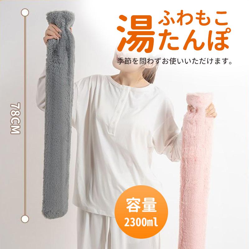 湯たんぽ ゆたんぽ 長い湯タンポ 容量2300ml 足 脚 腹 お湯入れ 注水式 カバー付き 厚手 可愛い 暖かい もふもふ 保温カバー付 水漏れない