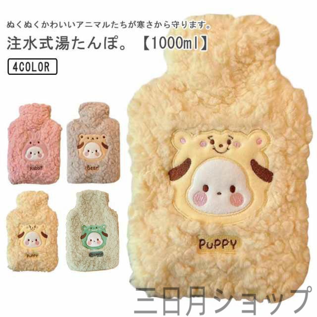 湯たんぽ かわいい もこもこ 柔らか 注水式 1000ml 注水式 ゆたんぽ あったか 暖かい 小型 寒さ対策 繰り返し使える お湯入れ 保温カバー付き 電気不要 防寒グッズ あったかグッズ 暖房器具 生理期 電気不要 節電