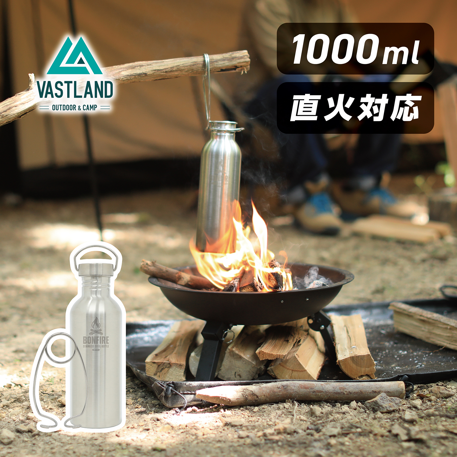 ■VASTLAND 焚き火 ステンレスボトル 1000ml 直火 キャンプ 湯たんぽ ボトル用ハンガー付き