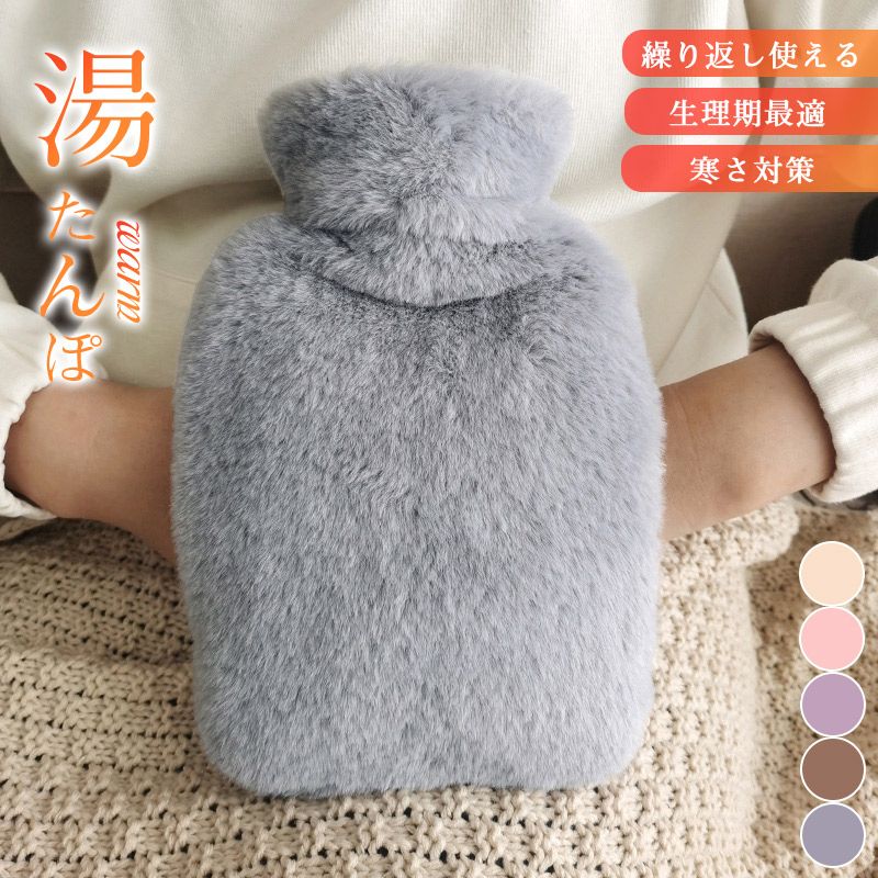 ■湯たんぽ フリースカバー付き 可愛い 容量2L お湯入れ 冷え性 対策 あったかグッズ 注水式 防寒 節電 保温 暖房 安眠 おしゃれ 防災グッ