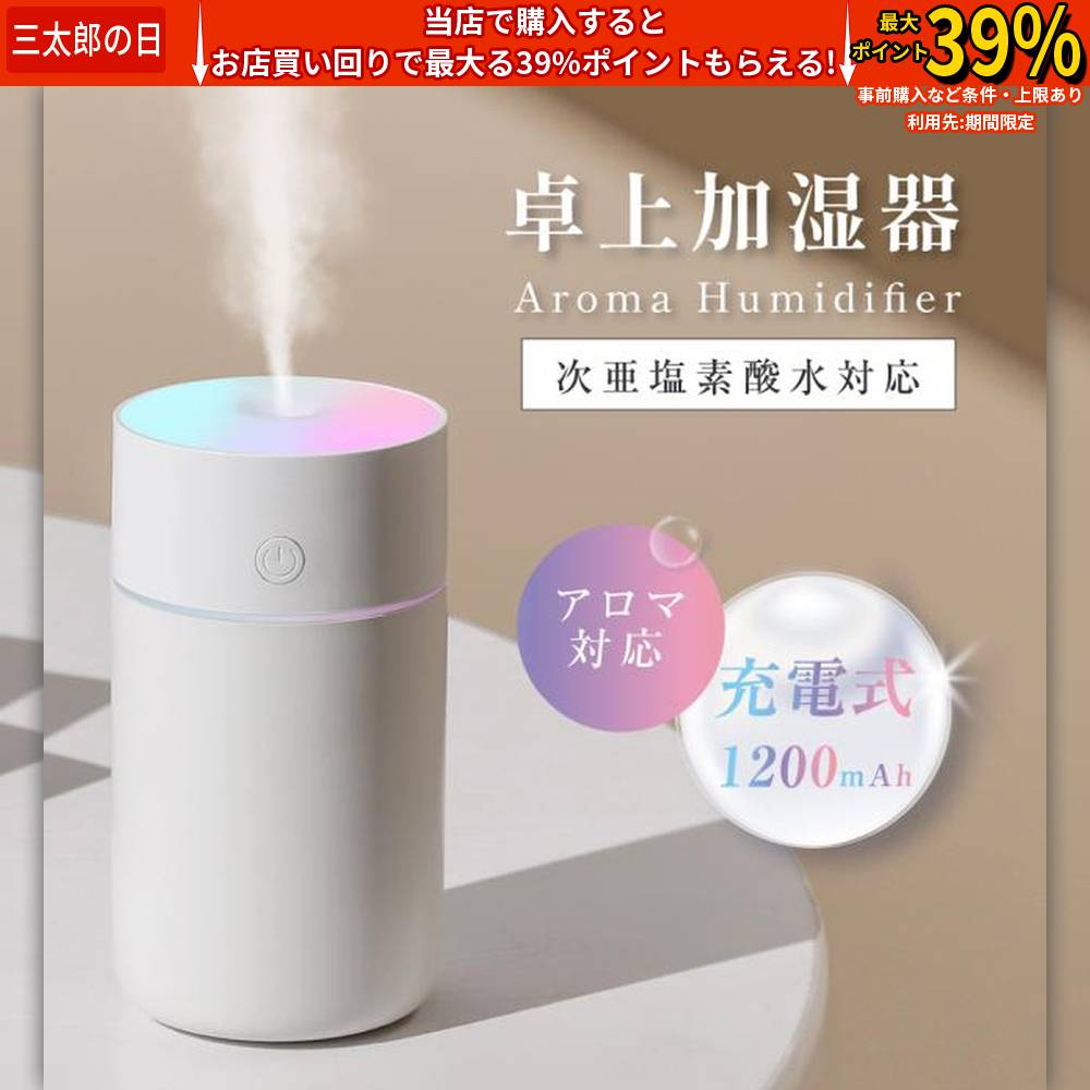 新作 パワフル加湿 加湿器 LEDライト 角度調節 超音波式 低騒音 小型 省エネ充電式 おしゃれ 2段階モード 除菌機能付き 空気清浄機 花粉対策 次亜塩素酸水対応 アロマ対応