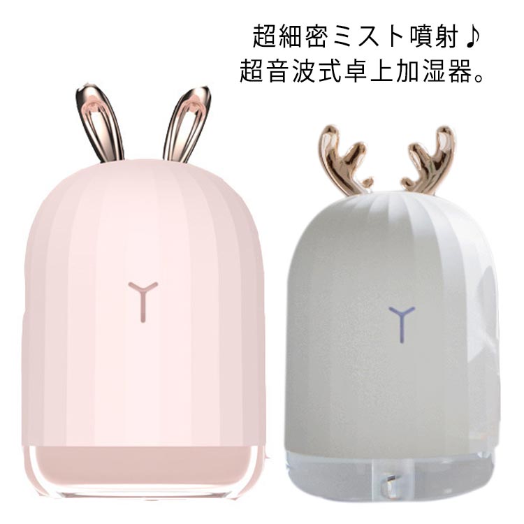 ■加湿器 卓上 小型加湿器 LEDライト付き 超音波式 コンパクト ミニ 加湿器 USB給電 車載 オフィス 寝室 静音 可愛い うさぎ 鹿