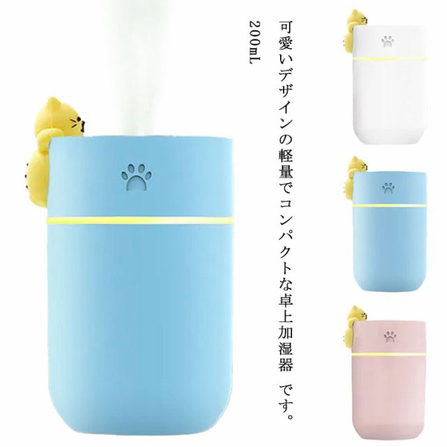 ■加湿器 卓上加湿器 小型 猫 ネコ ねこ かわいい 大容量 LEDライト付き USB充電式 除菌 持ち運び便利 寝室/オフィス/車載 コンパクト ミニ