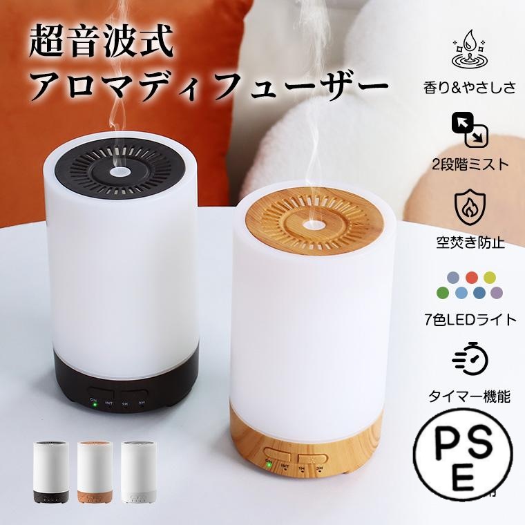 アロマディフューザー 加湿器 超音波式 静音 小型 アロマ対応 36H連続使用 空焚き防止 2モード 7色ライト
