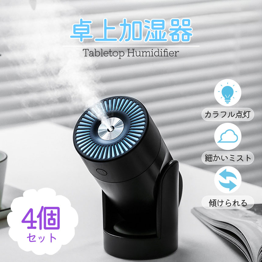 ■加湿器 上部給水 4個セット LEDライト 卓上 車 コンパクト 小型 アロマウォーター お手入れ簡単 オフィス 寝室 子供部屋 車用おしゃれ 卓