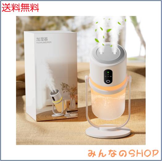 ■卓上 小型 加湿器【2025新モデル・多機能加湿器】超音波式 ダブル噴霧 抗菌 90°回転ミスト 25dB静音 大容量バッテリー内蔵 コードレス