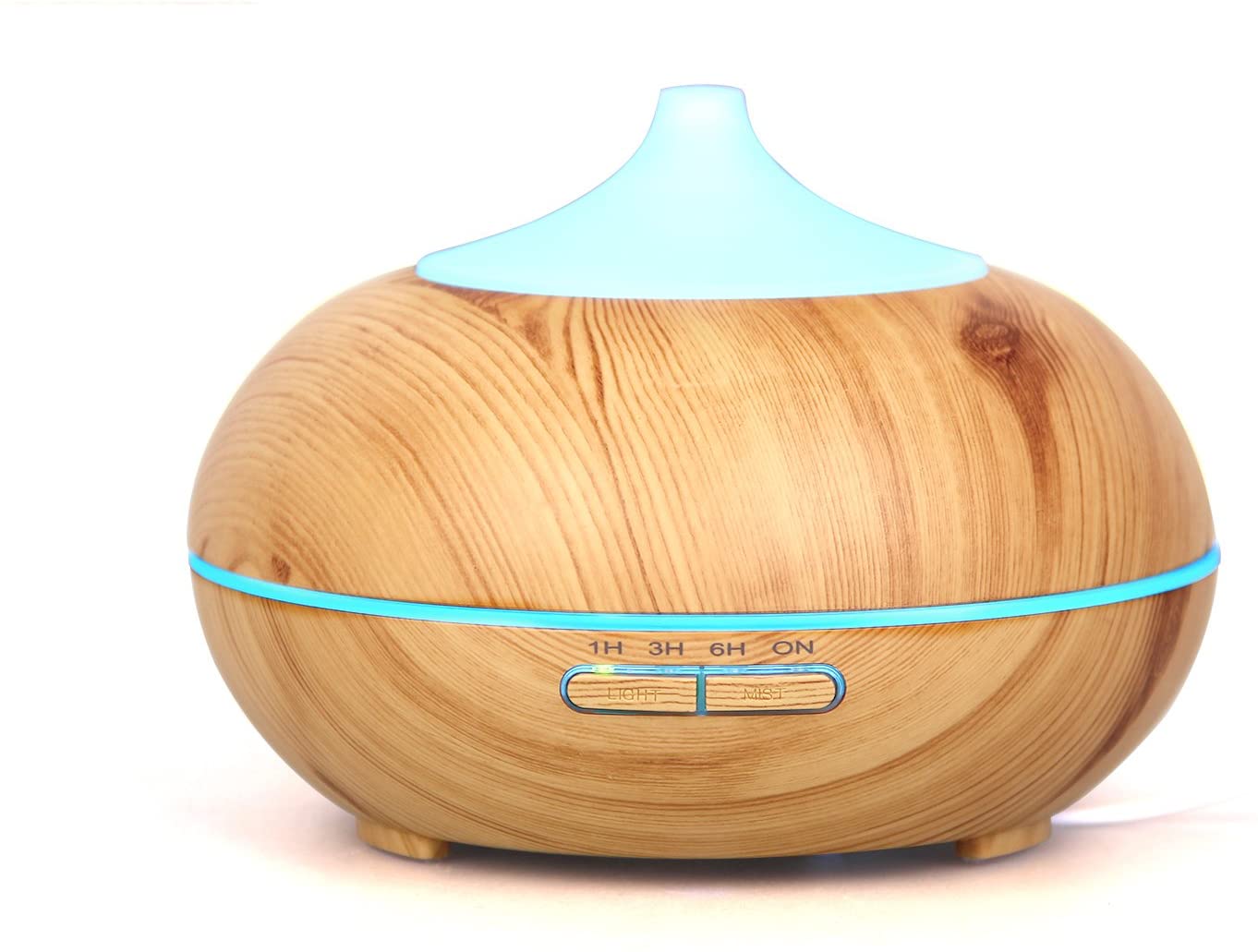 ■アロマディフューザー 超音波式 加湿器 ムードランプ 空焚き防止機能搭載 時間設定 部屋 会社 ヨガなど各場所用 (木目調)