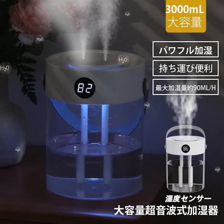 加湿器 卓上加湿器 乾燥対策 大容量 3L 軽量 600g LEDライト 持ち運び便利 パワフル加湿 低騒音 省エネ 安全 部屋 寝室 家庭用