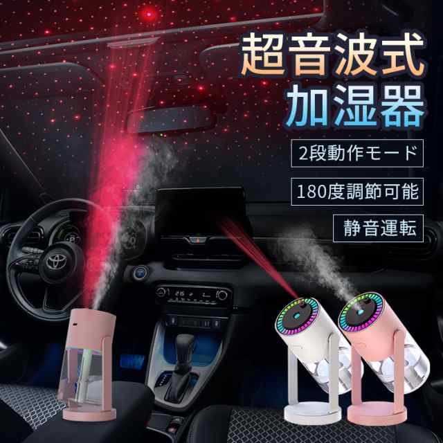 超音波式加湿器 加湿器 LEDライト 角度調節 超音波式 静音運転 小型 省エネ充電式 おしゃれ 2段階モード 空気清浄機 花粉対策