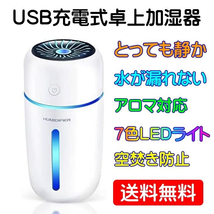 加湿器 超音波式 USB充電式 卓上 小型 アロマ 霧が細かい おしゃれ LED ライト リビング オフィス 寝室 赤ちゃん 静か 静音 アロマオイル 車 携帯 コードレス