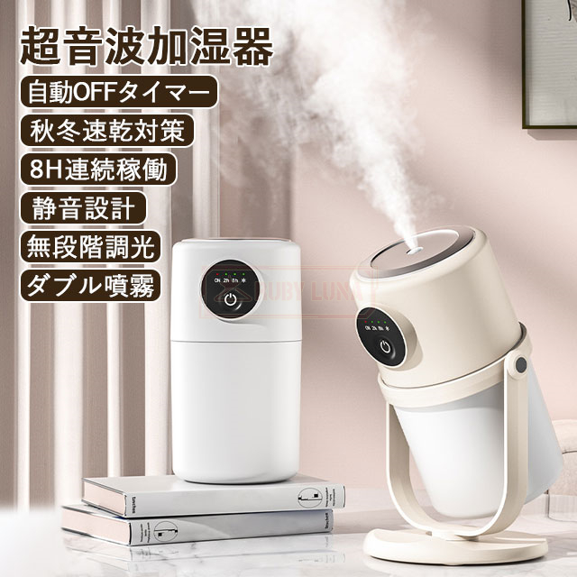 ■最安挑戦 冬新作 送料無料 新作 超音波加湿器 充電式 コードレス 加湿器 ダブル噴霧 2/8h自動OFFタイマー 8h連続加湿 280ml 強力加湿 保