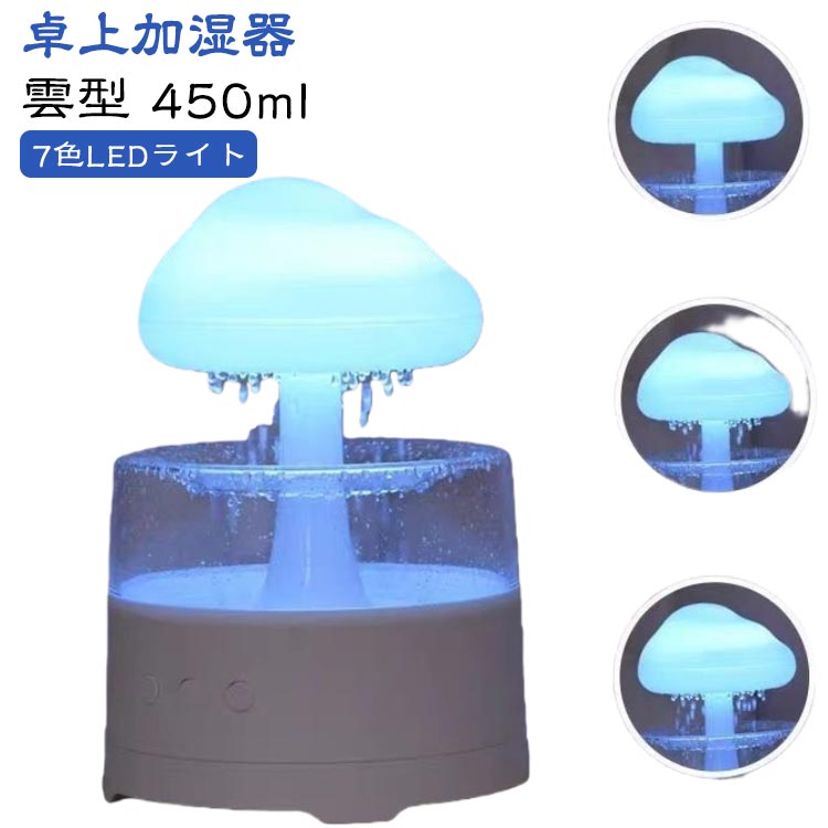 ■卓上加湿器 加湿器 七色LED 卓上 超音波加湿器 空焚き防止 水漏れ防止 オフィス 小型 おしゃれ 大容量 超音波式 USBタイプ 抗菌 除菌 保