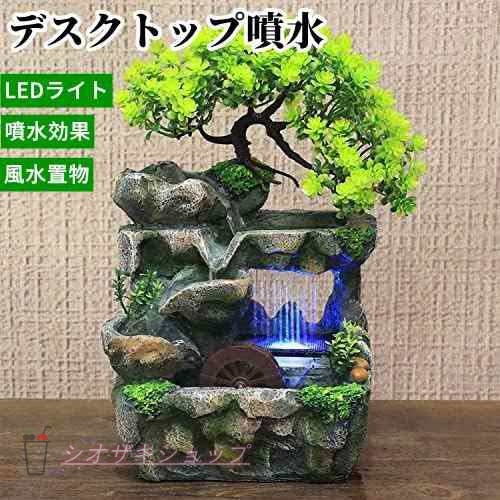 ■卓上噴水 デスクトップ噴水 樹脂 室内 風水 玄関 置物 インテリア おしゃれ 加湿器 流水 LEDライト付き 工芸品 開運 装飾 卓上用飾り 部