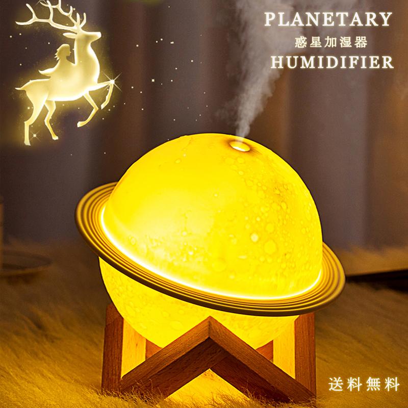 加湿器 卓上 ナイトライト 惑星加湿器 静音加湿器 3色ライト調整2段階スプレー調整 USB給電式 雰囲気ライト プレゼント バレンタイン 成人の日