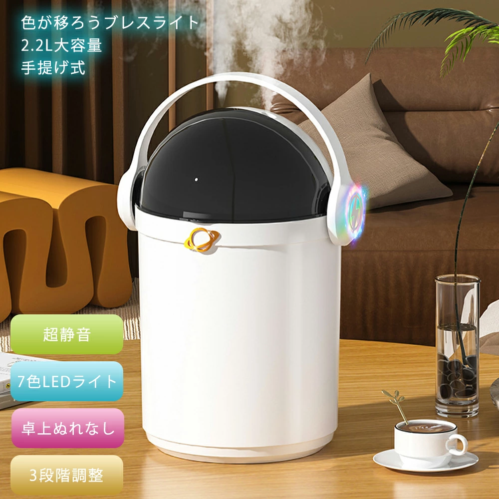 加湿器 小型 2.2L 手提げ式 コンパクト加湿器 加湿機 超静音 軽量 空気清浄 お手入れ簡単 卓上 おしゃれ オフィス 大容量 静音 上部給水 上から給水 強力加湿 保湿 乾燥 花粉 ウィルス対策 オフィス 子供部屋 省エネ エコ かわいい 空焚き防止 2200ml ミスト調節 3段階調整