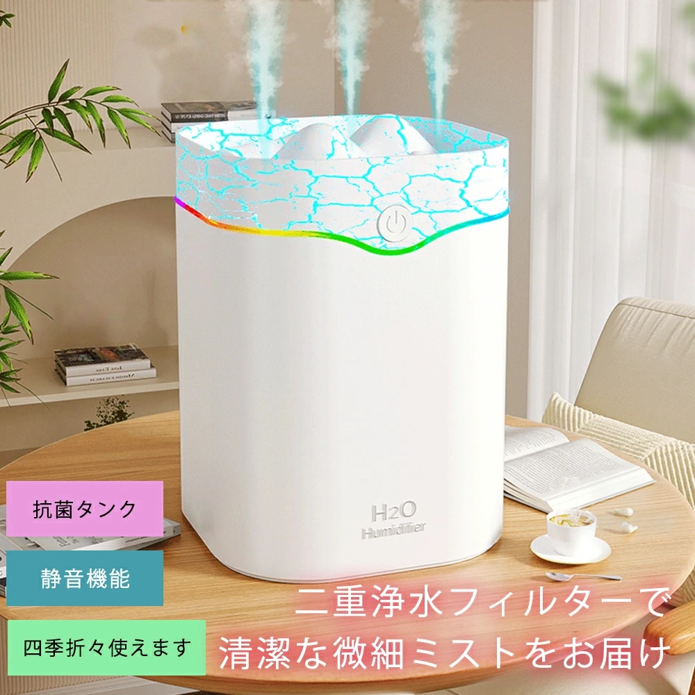 ■加湿器 小型 静音 卓上加湿器 2L お手入れ簡単 卓上 おしゃれ オフィス おしゃれ 大容量 上部給水 上から給水 節電 強力加湿 保湿 乾燥
